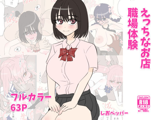 このお店では職場体験として、個室でお客さまと楽しくお話をしてもらいます。 でも緊張しなくて大丈夫! お客さまも不慣れなことを察して、優しく接してくれますから。 あとはお客さまに合わせるだけで大丈夫です。 それでは早速いってみましょう! 本編フルカラー63p 白ノリ修正 pdf同梱 作者x:@siosiopepper